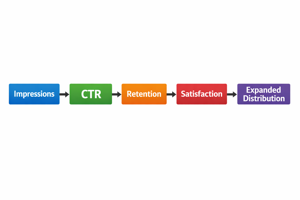 Impressions → CTR → Retention → Satisfaction → Expanded Distribution